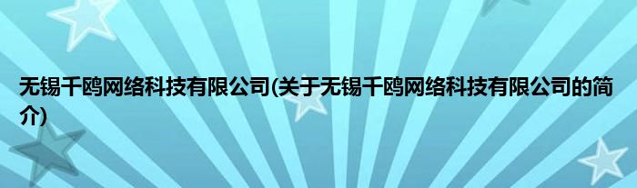 本文关于无锡千鸥网络科技有限公司的简介就讲解完毕,希望对大家有所帮助。