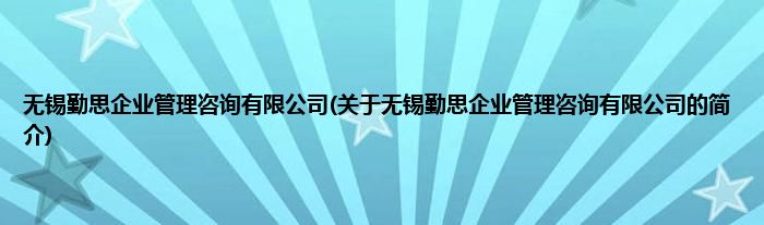本文关于无锡勤思企业管理咨询有限公司的简介就讲解完毕,希望对大家有所帮助。