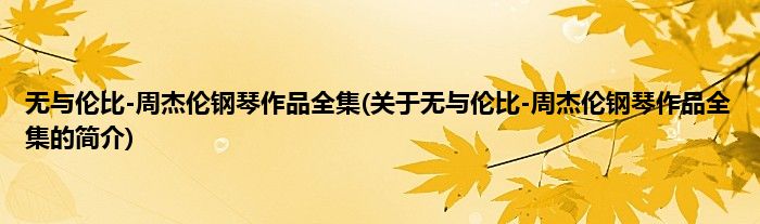 本文关于无与伦比-周杰伦钢琴作品全集的简介就讲解完毕,希望对大家有所帮助。