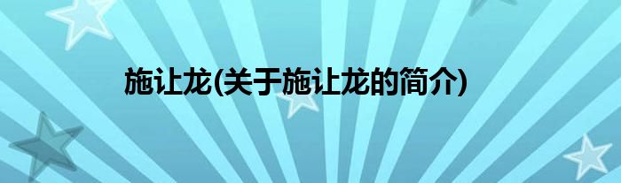 施让龙(关于施让龙的简介)