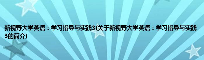 新视野大学英语:学习指导与实践3(关于新视野大学英语:学习指导与实践3的简介)