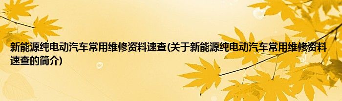 本文关于新能源纯电动汽车常用维修资料速查的简介就讲解完毕,希望对大家有所帮助。