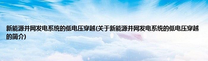 本文关于新能源并网发电系统的低电压穿越的简介就讲解完毕,希望对大家有所帮助。