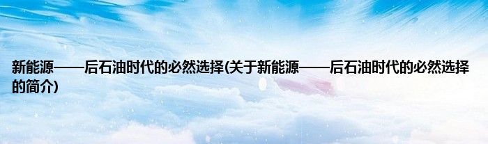 本文关于新能源——后石油时代的必然选择的简介就讲解完毕,希望对大家有所帮助。