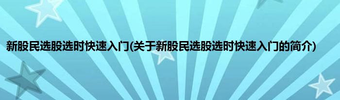 大家好,新股民选股选时快速入门,关于新股民选股选时快速入门的简介很多人还不知道,现在让我们一起来看看吧!