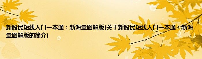 本文关于新股民短线入门一本通:新海量图解版的简介就讲解完毕,希望对大家有所帮助。