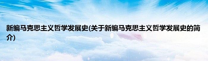 本文关于新编马克思主义哲学发展史的简介就讲解完毕,希望对大家有所帮助。