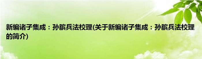 本文关于新编诸子集成:孙膑兵法校理的简介就讲解完毕,希望对大家有所帮助。