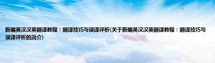 本文关于新编英汉汉英翻译教程:翻译技巧与误译评析的简介就讲解完毕,希望对大家有所帮助。