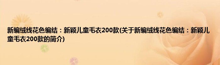 本文关于新编绒线花色编结:新颖儿童毛衣200款的简介就讲解完毕,希望对大家有所帮助。