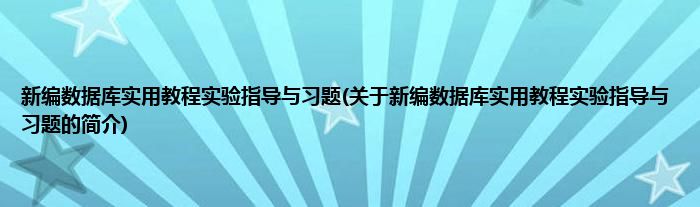 本文关于新编数据库实用教程实验指导与习题的简介就讲解完毕,希望对大家有所帮助。