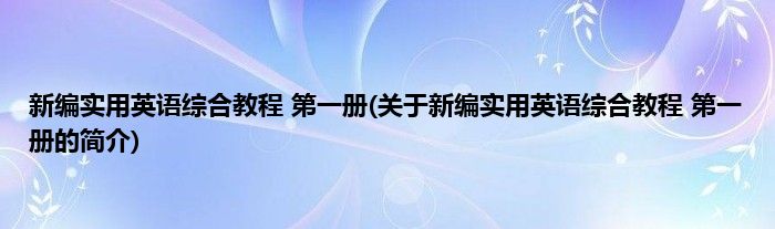本文关于新编实用英语综合教程 第一册的简介就讲解完毕,希望对大家有所帮助。