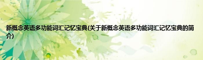 本文关于新概念英语多功能词汇记忆宝典的简介就讲解完毕,希望对大家有所帮助。