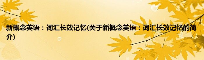 本文关于新概念英语:词汇长效记忆的简介就讲解完毕,希望对大家有所帮助。