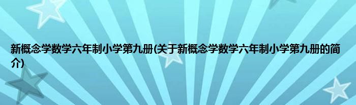 本文关于新概念学数学六年制小学第九册的简介就讲解完毕,希望对大家有所帮助。