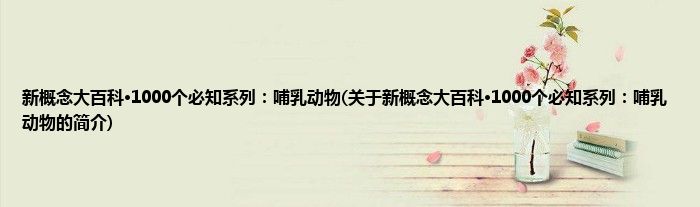 本文关于新概念大百科·1000个必知系列:哺乳动物的简介就讲解完毕,希望对大家有所帮助。