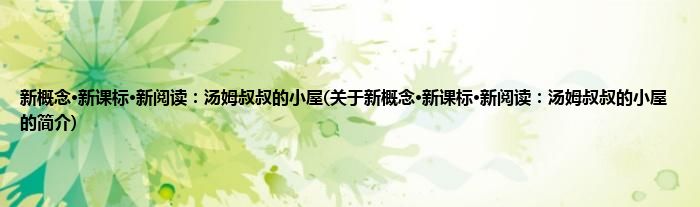 本文关于新概念·新课标·新阅读:汤姆叔叔的小屋的简介就讲解完毕,希望对大家有所帮助。