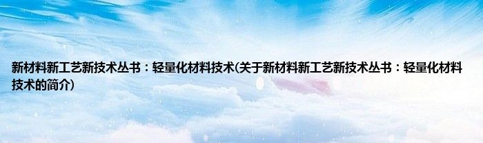 大家好,新材料新工艺新技术丛书:轻量化材料技术,关于新材料新工艺新技术丛书:轻量化材料技术的简介很多人还不知道,现在让我们一起来看看吧!