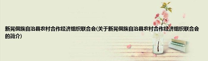 大家好,新晃侗族自治县农村合作经济组织联合会,关于新晃侗族自治县农村合作经济组织联合会的简介很多人还不知道,现在让我们一起来看看吧!