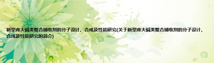 大家好,新型席夫碱类螯合捕收剂的分子设计、合成及性能研究,关于新型席夫碱类螯合捕收剂的分子设计、合成及性能研究的简介很多人还不知道,现在让我们一起来看看吧!