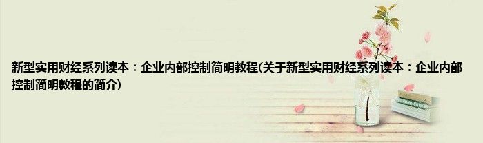 本文关于新型实用财经系列读本:企业内部控制简明教程的简介就讲解完毕,希望对大家有所帮助。