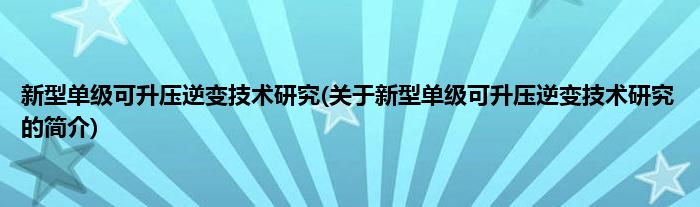 大家好,新型单级可升压逆变技术研究,关于新型单级可升压逆变技术研究的简介很多人还不知道,现在让我们一起来看看吧!