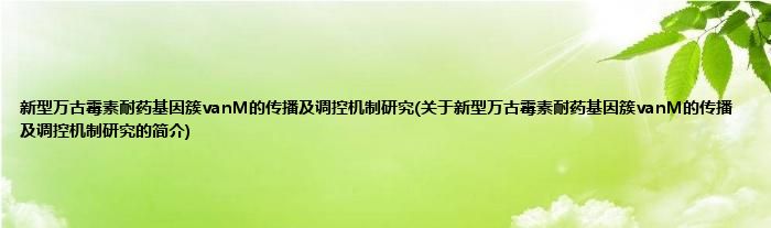 本文关于新型万古霉素耐药基因簇vanM的传播及调控机制研究的简介就讲解完毕,希望对大家有所帮助。