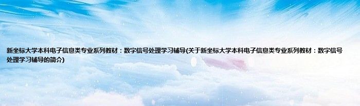大家好,新坐标大学本科电子信息类专业系列教材:数字信号处理学习辅导,关于新坐标大学本科电子信息类专业系列教材:数字信号处理学习辅导的简介很多人还不知道,现在让我们一起来看看吧!