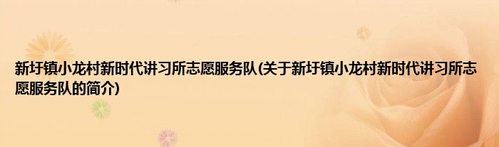 大家好,新圩镇小龙村新时代讲习所志愿服务队,关于新圩镇小龙村新时代讲习所志愿服务队的简介很多人还不知道,现在让我们一起来看看吧!