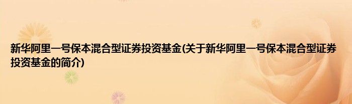 大家好,新华阿里一号保本混合型证券投资基金,关于新华阿里一号保本混合型证券投资基金的简介很多人还不知道,现在让我们一起来看看吧!
