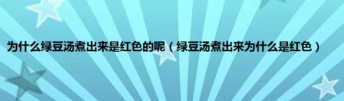 大家好,小科来为大家解答以上问题。为什么绿豆汤煮出来是红色的呢,绿豆汤煮出来为什么是红色很多人还不知道,现在让我们一起来看看吧!