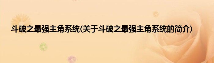 本文关于斗破之最强主角系统的简介就讲解完毕,希望对大家有所帮助。