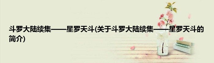本文关于斗罗大陆续集——星罗天斗的简介就讲解完毕,希望对大家有所帮助。