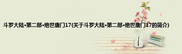 本文关于斗罗大陆·第二部·绝世唐门17的简介就讲解完毕,希望对大家有所帮助。