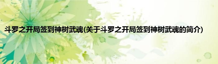 本文关于斗罗之开局签到神树武魂的简介就讲解完毕,希望对大家有所帮助。