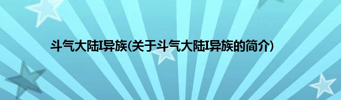 本文关于斗气大陆I异族的简介就讲解完毕,希望对大家有所帮助。
