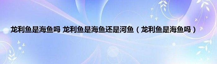 大家好,小科来为大家解答以上问题。龙利鱼是海鱼吗 龙利鱼是海鱼还是河鱼,龙利鱼是海鱼吗很多人还不知道,现在让我们一起来看看吧!