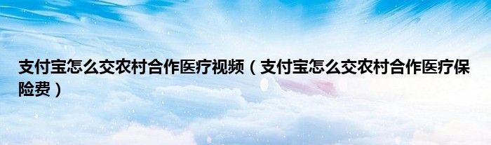 支付宝怎么交农村合作医疗视频(支付宝怎么交农村合作医疗保险费)