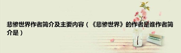 大家好,小常来为大家解答以上问题。悲惨世界作者简介及主要内容,《悲惨世界》的作者是谁作者简介是很多人还不知道,现在让我们一起来看看吧!