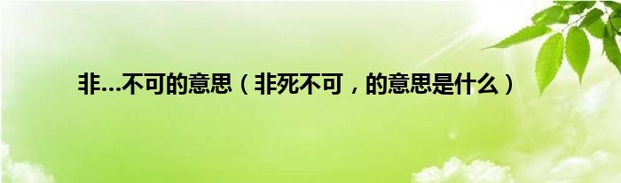 大家好,小常来为大家解答以上问题。非…不可的意思,非死不可,的意思是什么很多人还不知道,现在让我们一起来看看吧!