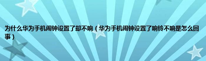 大家好,小常来为大家解答以上问题。为什么华为手机闹钟设置了却不响,华为手机闹钟设置了响铃不响是怎么回事很多人还不知道,现在让我们一起来看看吧!