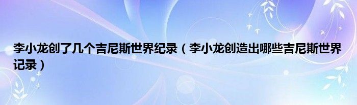 大家好,小常来为大家解答以上问题。李小龙创了几个吉尼斯世界纪录,李小龙创造出哪些吉尼斯世界记录很多人还不知道,现在让我们一起来看看吧!