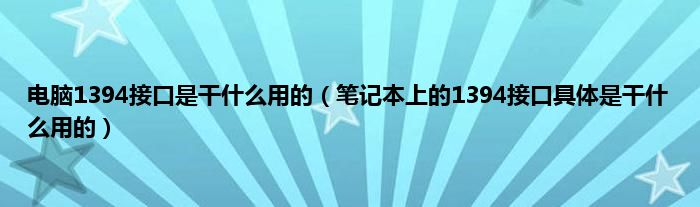 1394接口,全称IEEE1394接口,也称火线接口(Firewire),是一种广泛应用于计算机,通信以及家庭数字娱乐的高速低成本的数字接口。IEEE1394接口最早是由美国苹果公司开发的Firewire用于网络互联,后由IEEE标准化组织进行标准化而形成现行标准。笔记本电脑的迷你1394接口都是不带电源输出的,是四针接口,(标准的1394接口是6针,带电源输出)所以笔记本电脑用户在使用1394接口的外置时,要注意自己的外设是否自己带电源接口设备(有的1394接口的外置是通过USB或PS2取电;有的1394接口的外置是自带电源的,如照相机)。请采纳。