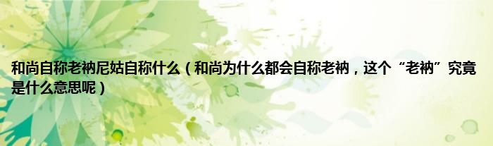 大家好,小常来为大家解答以上问题。和尚自称老衲尼姑自称什么,和尚为什么都会自称老衲,这个“老衲”究竟是什么意思呢很多人还不知道,现在让我们一起来看看吧!