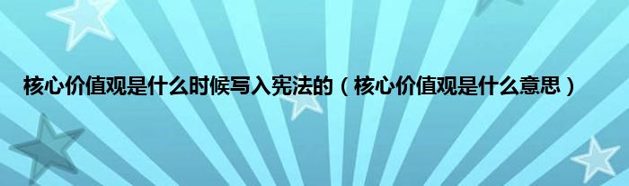 大家好,小常来为大家解答以上问题。核心价值观是什么时候写入宪法的,核心价值观是什么意思很多人还不知道,现在让我们一起来看看吧!