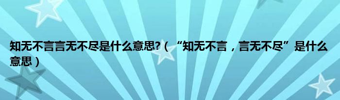 知无不言言无不尽是什么意思?(“知无不言,言无不尽”是什么意思)