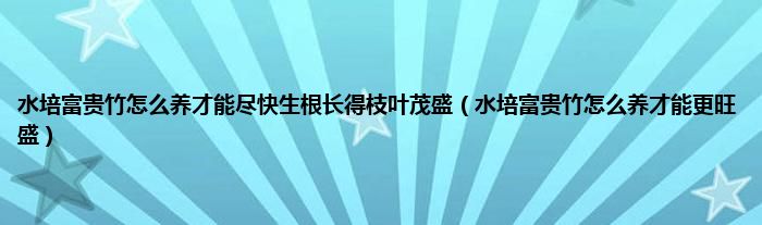 大家好,小常来为大家解答以上问题。水培富贵竹怎么养才能尽快生根长得枝叶茂盛,水培富贵竹怎么养才能更旺盛很多人还不知道,现在让我们一起来看看吧!
