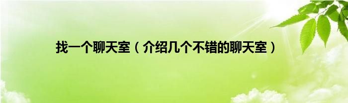 大家好,小常来为大家解答以上问题。找一个聊天室,介绍几个不错的聊天室很多人还不知道,现在让我们一起来看看吧!
