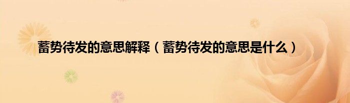大家好,小常来为大家解答以上问题。蓄势待发的意思解释,蓄势待发的意思是什么很多人还不知道,现在让我们一起来看看吧!