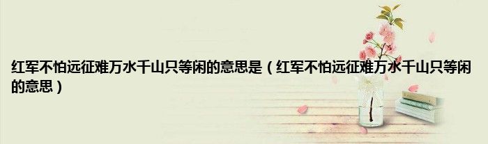 大家好,小常来为大家解答以上问题。红军不怕远征难万水千山只等闲的意思是,红军不怕远征难万水千山只等闲的意思很多人还不知道,现在让我们一起来看看吧!